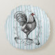 French Rooster Le Poulet is a vintage image of a French Farmhouse Rooster on teal blue and white French Cotton Ticking.