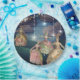 Four women in French royal Rococo fashion with hoop skirts dancing in a theatre setting with dangling twinkling lights above. Magical