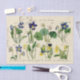 Vintage French script with a postmark accompanies a selection of violets and violas for this springtime tissue paper.