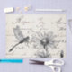A dragonfly and friends investigate a field of wildflowers with French script on a parchment paper background in this vintage collage. New larger size for bigger decoupage projects. This wildflower dragonfly design spans four different sheets of tissue paper so you can choose your own configuration. Use Parts I and III or Parts II and IV for a vertical space or combine all four designs to make a larger 20 x 30" scene.