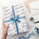 French words and phrases cover this wrapping paper with expressions like "I'm sending my love", "beautiful", "full of life", "marvellous" and more.