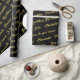 French words and phrases cover this black and gold wrapping paper with expressions like "I'm sending my love", "beautiful", "full of life", "marvelous" and more.