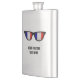 The product is a good size and came exactly as it was pictured. The lid is not attached to the flask, which could be dangerous on drunken nights... The print came out surprisingly well and looks very sharp. Would definitely recommend.