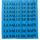 The word for bathroom in French (LA SALLE DE BAIN) in black letters on a turquoise solid background.