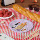 Whimsical design with a French snack of a baguette and chocolate, with a lavender motif.