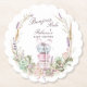This charming coaster features a stack of soft pastel blue and pink macarons tied with a sweet bow, and elegant floral wreath, this design sets the tone for a stylish French-inspired party. Ideal for a baby showers, birthday parties or bridal showers with french theme that’s both romantic and chic.
