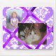 Lovely custom mouse pad done in a French bulletin board look, with a background of purple and white damask, and purple ribbons and buttons. Personalise this great mousepad with your favourite photographs, or make one as a gift. Great for home or your office everyone will love it.