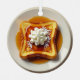 A breakfast plate of French toast, powdered sugar, whipped cream syrup realistic food Christmas ornament with a pun that can be personalised.