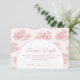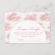Celebrate a timeless and romantic baby shower with this elegant pink toile design, featuring delicate vintage countryside illustrations in soft blush tones. The refined arch layout creates a beautiful focal point for your event details, blending classic European charm with a modern, feminine aesthetic. Perfect for a chic, storybook-inspired celebration, this design feels both graceful and effortlessly sophisticated—ideal for creating a memorable and stylish gathering.