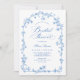 This elegant blue and white bridal shower invitation features a graceful arch floral frame inspired by French toile and Hampton style design. Delicate wildflowers and vintage botanical details blend chinoiserie influence with Victorian elegance for a timeless look. Perfect for a classic bridal shower, this floral invitation offers a refined, romantic style with a soft blue palette and traditional charm.