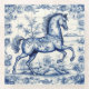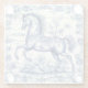 Decorative glass coaster features a beautiful blue on white carousel horse in French Toile style.