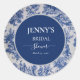 French Toile de Jouy Blue and White Bridal Shower Classic Round Sticker