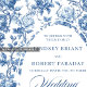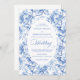 French Toile de Jouy Blue Roses Elegant Wedding Invitation