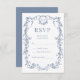 Invite guests to reply with this French Victorian dusty blue wedding RSVP card. Ornate vintage detailing blends with a soft dusty blue palette to create a romantic and historically inspired design. The refined layout provides clear readability and a polished, print ready finish that complements any elegant or vintage themed wedding.