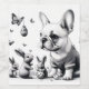 This charming black-and-white illustration captures the joyful spirit of Easter with a playful French Bulldog surrounded by bunnies and Easter eggs. The Frenchie, full of energy and excitement, is ready for the hunt — but not without a few snuggles along the way. With a perfect blend of cute, whimsical, and artistic flair, this design brings together the Easter magic and the loveable nature of Frenchies in a timeless monochrome style. A must-have for any Frenchie fan ready to celebrate the season with a smile!