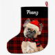 Frenchie Bulldog and Red Plaid with Dog's Name Lar Large Christmas Stocking