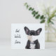 Black with white Frenchie or French Bulldog wears a face mask and wishes the recipient a speedy recovery