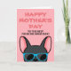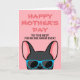 Frenchies, what better way to show your Mum how much you love her this Mother's Day with a personalised card just from you! The design features a cartoon style illustration of a black coloured french bulldog wearing blue sunglasses with the wording "Happy Mother's Day to the best Frenchie Mum ever!" written on the front. The inside of the card reads "To Mum, I love you more than treats" but can be changed to the wording of your choice. Different coloured french bulldog versions are also available.
