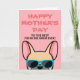 Frenchies, what better way to show your Mum how much you love her this Mother's Day with a personalised card just from you! The design features a cartoon style illustration of a light fawn coloured french bulldog wearing blue sunglasses with the wording "Happy Mother's Day to the best Frenchie Mum ever!" written on the front. The inside of the card reads "To Mum, I love you more than treats" but can be changed to the wording of your choice. Different coloured french bulldog versions are also available.
