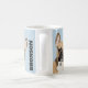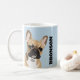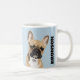 Personalised pet mug featuring a pastel blue background that can be changed to any colour, a cute french bulldog and their name. A perfect gift for any dog lover!