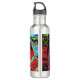 Stay hydrated in bold style with this Water Bottle featuring Frequency Serpent. A serpentine red structure curves vertically across the bottle, marked by circular elements resembling vibrational cores, while horizontal bands of blue, green, and white flow in the background like waves of data. The interplay of intense colors and curved forms creates dynamic tension, transforming this everyday essential into a functional canvas of digital abstract art. Perfect for workouts, travel, or gifting to those who love utility with creativity.