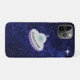 Alien and flying saucer on our navy blue Milky Way Galaxy iPhone Case. Text can be personalised. Star can be customised.