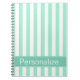 A fresh aqua and white stripes notebook design personalised with your name, company, or other text by replacing the sample text in the design template. Additional office products are available in this design for a coordinated look.