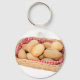 Fresh white and brown bread rolls in a gingham-lined wicker basket