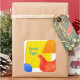 An eye catching colourful square sticker featuring bold colours and shapes with a red chicken, orange triangle, yellow square, and royal blue circle painted with watercolor. You can customise the text to fit your needs.