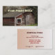 Easily personalise the front and back of this business card advertising fresh eggs for sale. The front features a rural country scene with an old wood chicken coop with weathered red wooden barn board and white trim around the window set on a lovely green lawn and an evergreen tree behind. The apple tree with white and pink flowers tells us it is spring. The reverse side has all the pertinent text which can be customised to suit your business.
