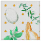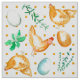 A fun fabric for chicken lovers decorated with golden brown hens, eggs, and herbs hand painted with watercolor with honey yellow polka dots in the background. Great for kitchen decor, crafts, and quilting projects!