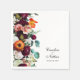 Fresh autumn floral bouquets add an elegant rustic charm to this wedding napkin design. Personalise the text template with the bride and groom's names and wedding date. This design is also a wonderful choice for engagement parties or anniversary celebrations. The flowers include burgundy wine and blush pink roses, orange chrysanthemums, white snapdragons, and teal green eucalyptus.