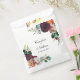 Fresh autumn floral bouquets add an elegant rustic charm to this wedding favour bag design. Personalise the text template with the bride and groom's names and wedding date. This design is also a wonderful choice for engagement parties, bridal showers, or anniversary celebrations. The flowers include burgundy wine and blush pink roses, orange chrysanthemums, white snapdragons, and teal green eucalyptus.