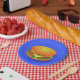 This design is a fresh hamburger. The hamburger has meat, cheese and sauce. This fresh hamburger design looks great on this Paper Plates