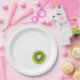 Fresh kiwi fruit. Round slice closeup isolated Paper Plate