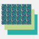 Fresh Leaf Pattern in Blue Teal and Green Wrapping Paper Sheet