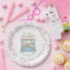 Fresh Off The Market Farmer's Floral Bridal Shower plates with a pretty pink and blue Farmer's Market cart full of pink roses and other lovely fresh market goods!