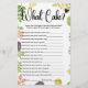 The "What Cake" game card provides a clear and attractive space for guests to write down their guesses. It serves as both an entertaining activity during the shower and a sweet keepsake for the bride to see what everyone predicted.