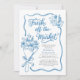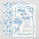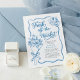 Delicate blue florals, hand-drawn line art, and graceful script typography create a timeless European aesthetic that feels both refined and effortlessly playful. The bouquet illustration symbolises love in full bloom — beautifully wrapped, carefully chosen, and ready to be celebrated.