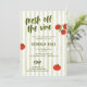 The backdrop, with its soft green stripes, whispers the serenity of a sun-dappled garden, providing a calming and elegant canvas that enhances the lively tomato theme. The whimsical handwritten font brings an inviting warmth and charm, perfectly complementing the rustic vibe while presenting your bridal shower details with style and clarity.