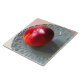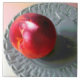 The image on this large Ceramic Tile is an original photograph by ZoeSPEAK of a fresh peach, in all its glorious shades of reds, pinks and yellows. The fruit is resting on a light aqua blue plate which has a relief design of a whole peach with a leaf, and a peach slice. The border of the china plate has a basket-weave pattern. Sunlight shines on the top of the peach, adding a rosy glow to the background and the entire photo.