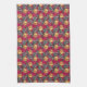The original artwork by ZoeSPEAK on this Kitchen Towel is a pattern made from Zoe’s original illustration of a peach just picked from the tree, with soft green leaves still attached. The golden yellow fruit, with an orange blush on its curves, is arranged in vertical rows along vertical stripes of white and peach pink. The background of the wallpaper pattern is terracotta red, making a warm, colourful fabric design with a country feel.