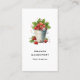 Business card with a summery graphic of a bunch of strawberries overflowing in a bucket.
