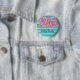 Fresh Pink Daisy Flowers on Turquoise Stripes 6 Cm Round Badge