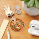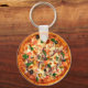 Nothing beats a fresh pizza pie like the one that decorates this keychain displayed with all sorts of pizza toppings it is designed you can add your own text tumour promote something or just a budget keychain as a party favour for a large group.