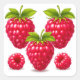 Fresh Ripe Raspberries with Green Leaves Square Sticker