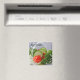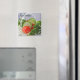 Beautiful fridge magnet with a fresh salad (lettuce, tomatoes, cucumbers, parsley, and a splash of water)!