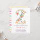 Fresh and floral watercolor 2nd birthday invitation with the flowers arranged in the shape of the number "2" in pastel shades of yellow, coral, pink and lavender.