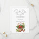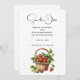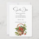 Save the date card with a fresh summer vibe. A cute illustration featuring fresh picked strawberries filling up a quaint wicker basket.