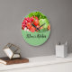 Funny kitchen wall clocks for Mom designed with a colorful graphic of fresh fruit and name space you can personalize online with the name of your Mother or use our design as it shown. Makes a great housewarming gift for mom.
